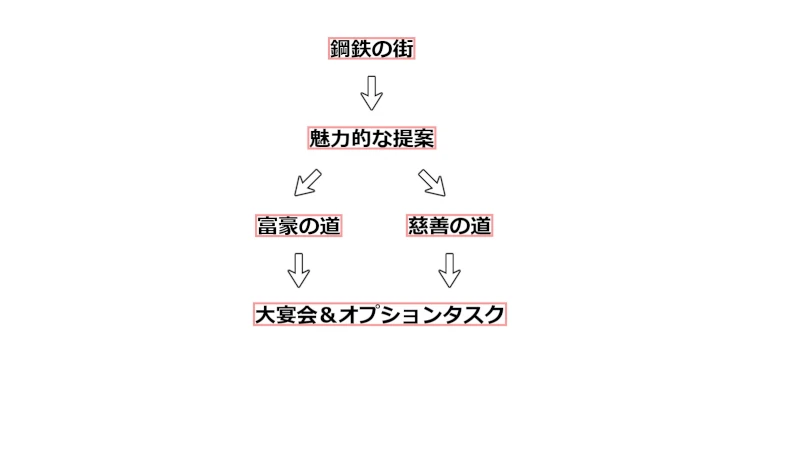 どちらを選んでもそのあとは大宴会とオプションタスクが発生するという流れです